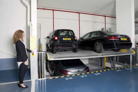 מתקני חניה הכוללים 3 מקומות חניה בלתי תלויים לכל מקום חניה קונבנציונלי בבניין מגורים חדש ויוקרתי בהרצליה